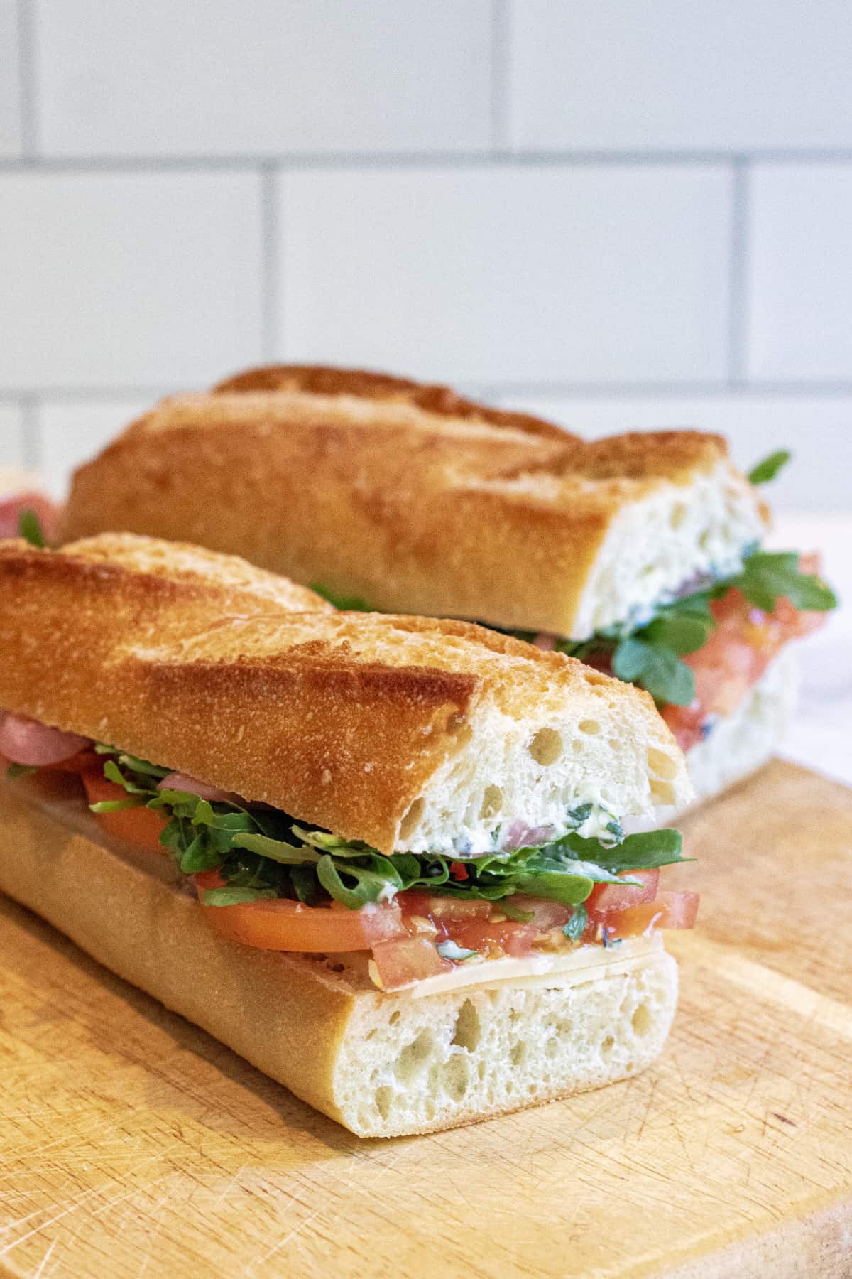 Tomato Arugula Baguette Sandwich Served From Scratch